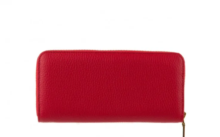 Czerwony portfel marki Bayla wykonany z eleganckiej groszkowej skóry naturalnej. Z przodu ozdobiony dyskretnym logo marki producenta BAYLA. Główna komora portfela zapinana na zamek błyskawiczny. Bardzo pojemny. W środku znajdują się 3 duże przegrody, 4 przegrody na karty lub wizytówki, jedna komora zapinana na zamek, oraz 2 komory, z czarnej siateczki, do których możemy schować karteczki lub zdjęcia. Portfel posiada kolorystycznie dopasowaną czerwoną podszewkę.