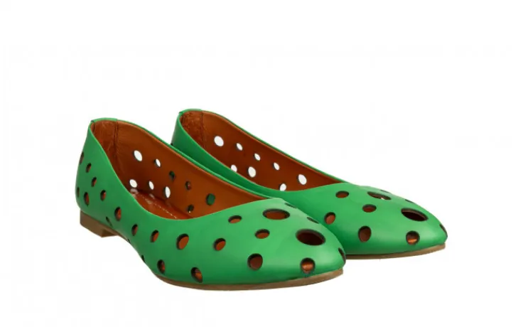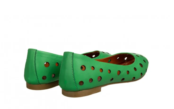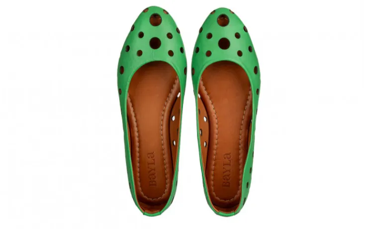 Baleriny marki Bayla wykonane ze skóry naturalnej w kolorze zielonym.