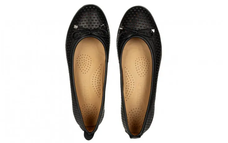 Baleriny marki Bayla wykonane ze skóry naturalnej licowej w kolorze czarnym.