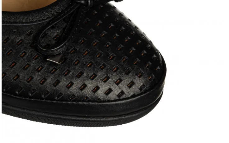 Baleriny płaskie wsuwane z ażurowaną cholewką. Wnętrze w całości skórzane. Wkładka profilowana, oddychająca. Antypoślizgowa podeszwa z gumy zapewnia trwałość i przyczepność. Model jest bardzo lekki, a jego miękkie podeszwy sprawią, że będzie to idealny dodatek na każdą okazję.