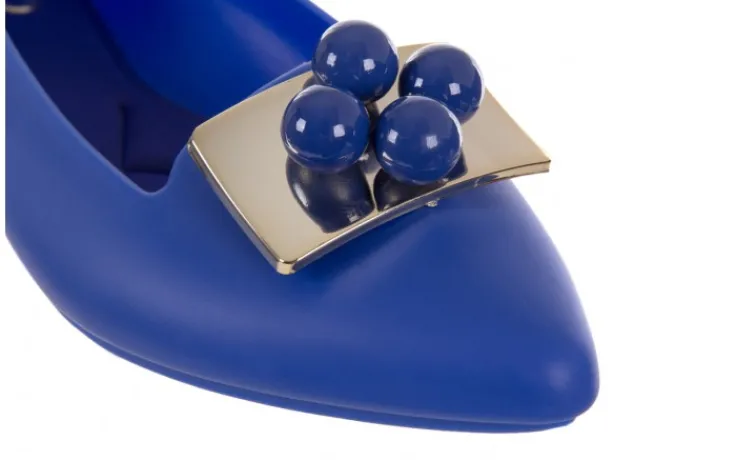 Niebieskie baleriny marki T&G Fashion. Ozdobna klamra na noskach uzupełni klasyczny krój cholewek. Buty idealnie sprawdzą się podczas ciepłych, letnich dni. Wyjmowana wkładka wykonana z gąbki.