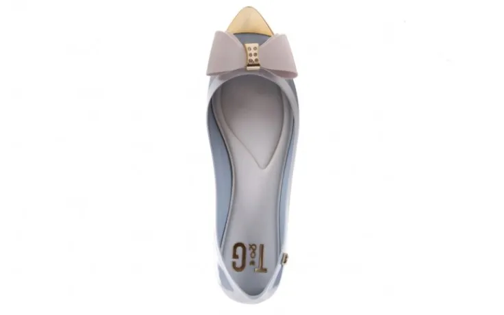 Niebiesko-białe baleriny marki T&G Fashion. Na noskach ozdobna gumowa kokarda, która uzupełni klasyczny krój cholewek. Buty idealnie sprawdzą się podczas ciepłych, letnich dni. Wyjmowana wkładka wykonana z miękkiej gąbki.