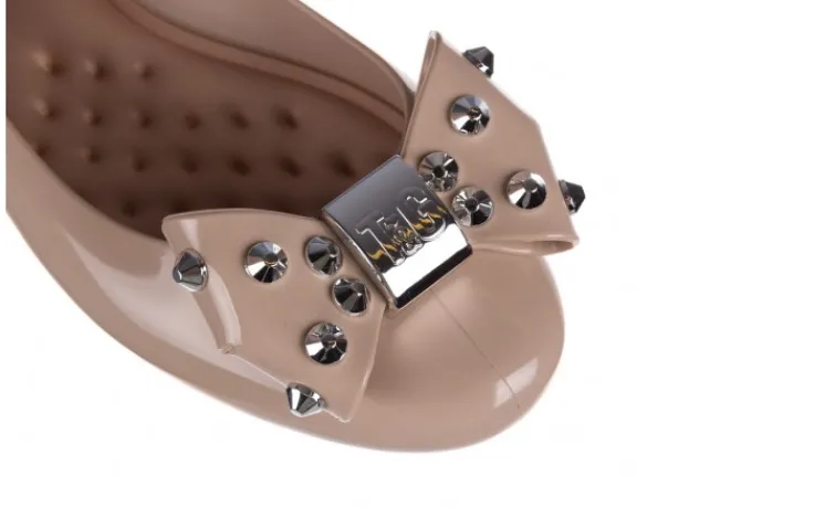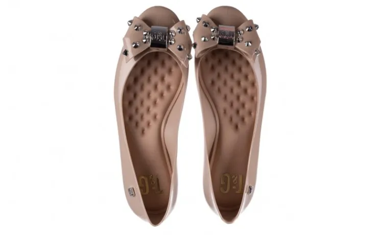 Baleriny marki T&G Fashion wykonane z wysokiej jakości, elastycznego tworzywa w kolorze beżowym, lakierowane.