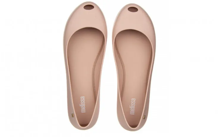 Baleriny marki Melissa wykonane z tworzywa Mel- Flex w kolorze pudrowego różu, matowe.