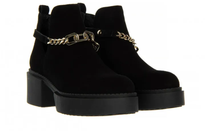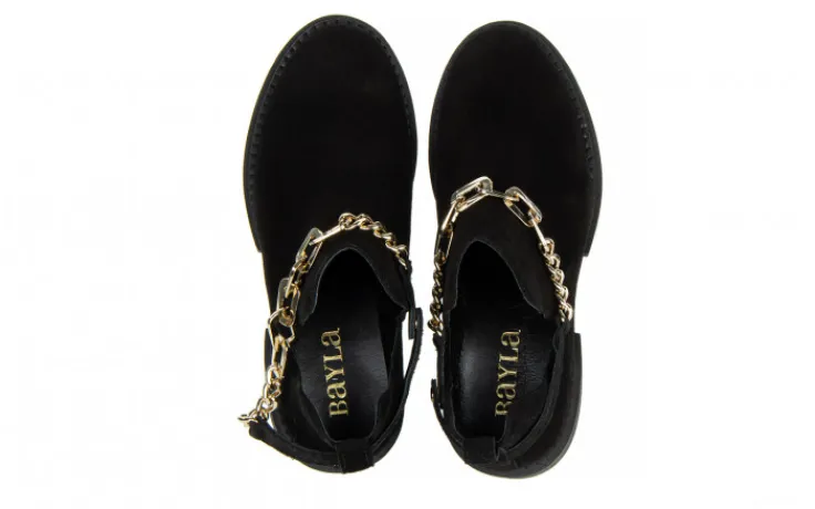 Botki marki Bayla wykonane z naturalnej skóry zamszowej w kolorze czarnym.