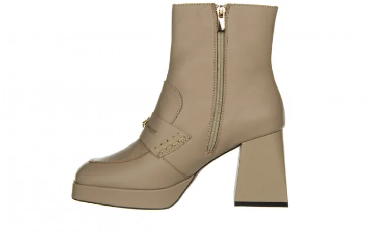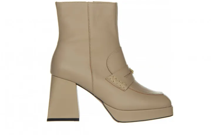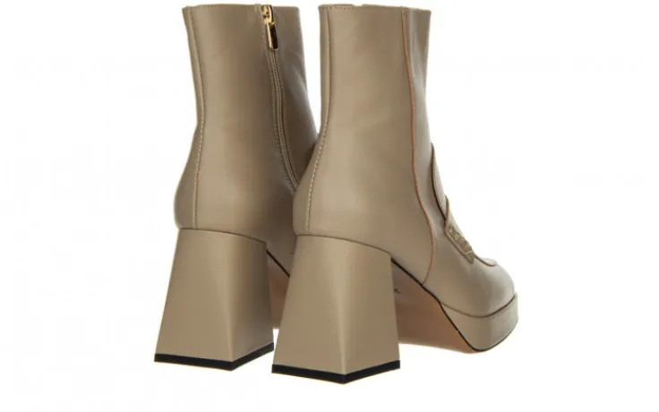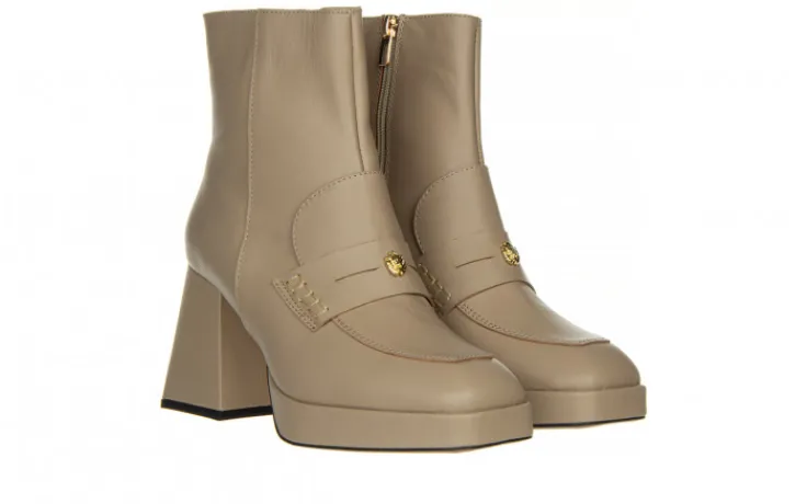 Botki marki Bayla wykonane z naturalnej skóry licowej w kolorze beżowym.