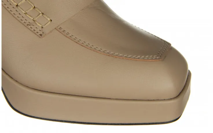 Wyjątkowy design botków na wzór mokasynów. Obuwie zasuwane na wygodnym 9-centymetrowym obcasie. Klasyczna, elegancka cholewka o prostym kształcie. Wkładka oraz wyściółka ocieplane przyjemnym w dotyku materiałem. Platforma dodaje centymetrów i przy tym sprawia, że buty stają się bardzo wygodne.