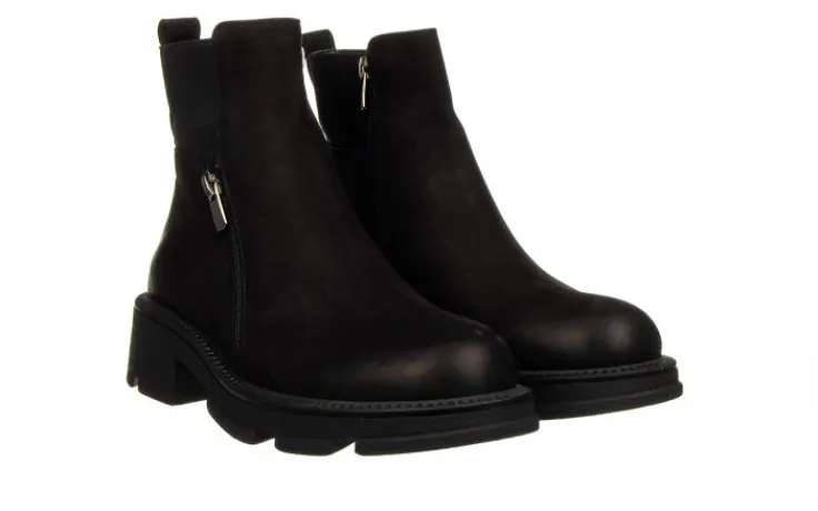 Botki marki Bayla wykonane z wysokiej jakości skóry naturalnej nubukowej w kolorze czarnym.
