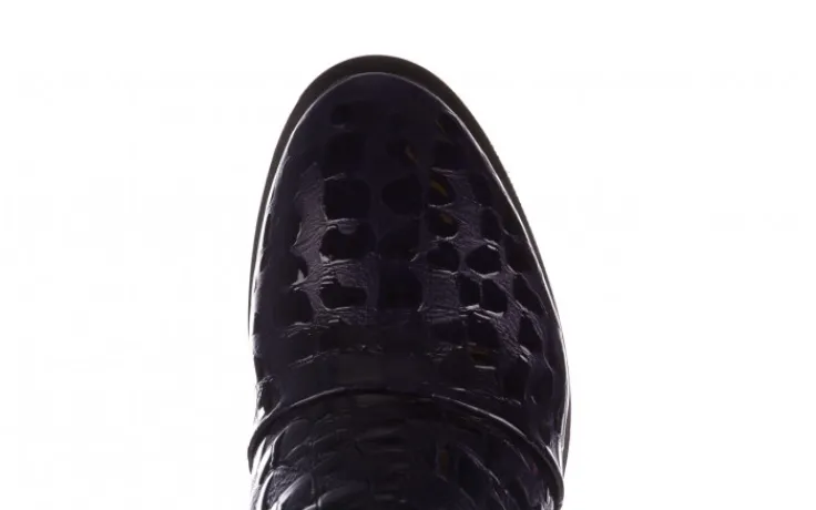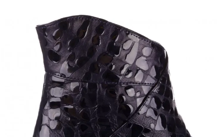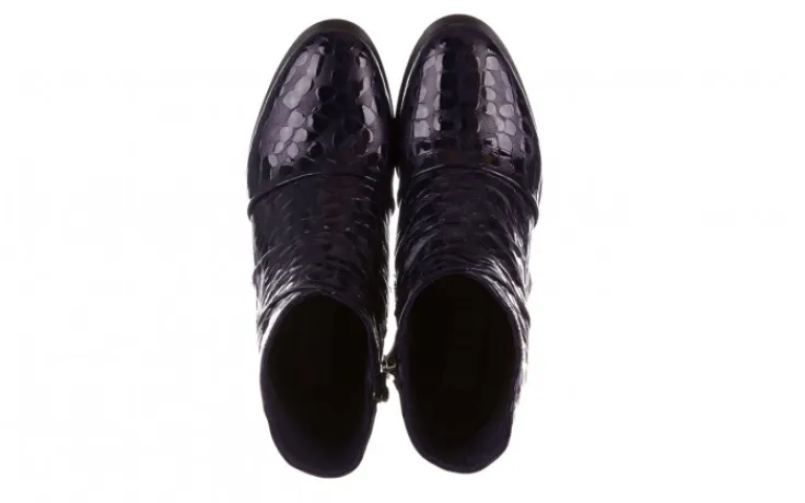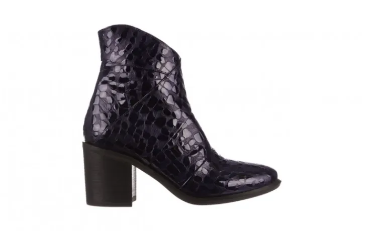 Botki marki Bayla wykonane z naturalnej skóry lakierowanej w kolorze granatowym.