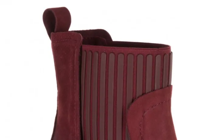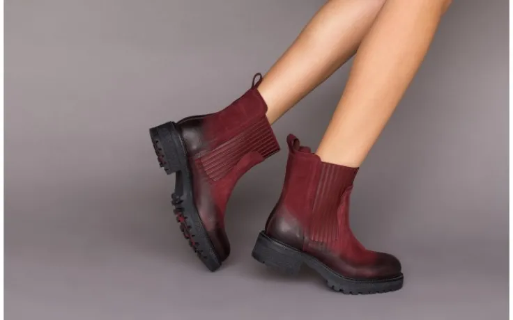 Botki marki Bayla wykonane z najwyższej jakości skóry naturalnej nubukowej w kolorze bordowym.