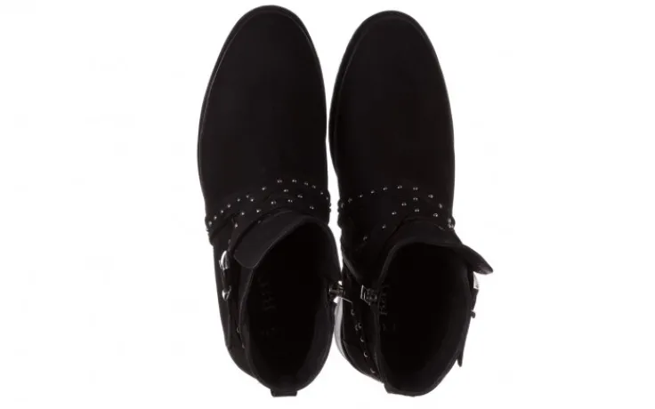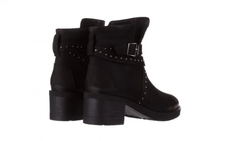 Botki marki Bayla wykonane z naturalnej skóry nubukowej w kolorze czarnym.