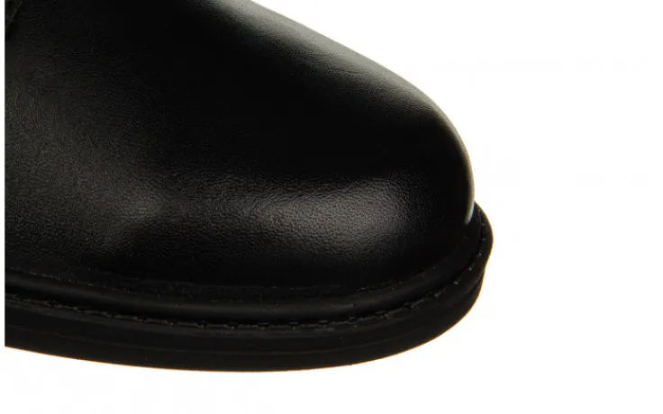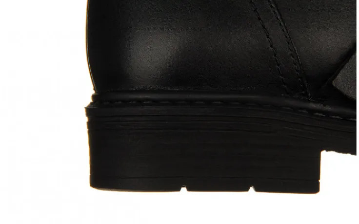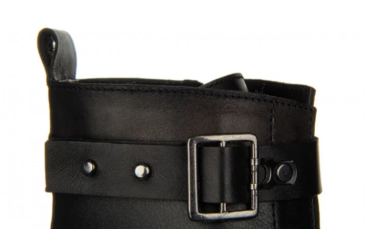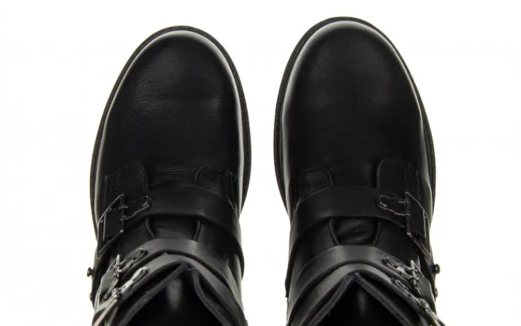 Zasuwane botki damskie z cholewką sięgającą za kostkę. Ozdobne klamry z zewnętrznej strony. Gumowa, antypoślizgowa podeszwa amortyzuje wstrząsy oraz izoluje stopę od zimnego podłoża. Wyściółka z ocieplanego materiału. Wkładka z miękkiej gąbki pokrytej skórą naturalną. Model z okrągłym noskiem zgrabnie prezentuje się na nodze.