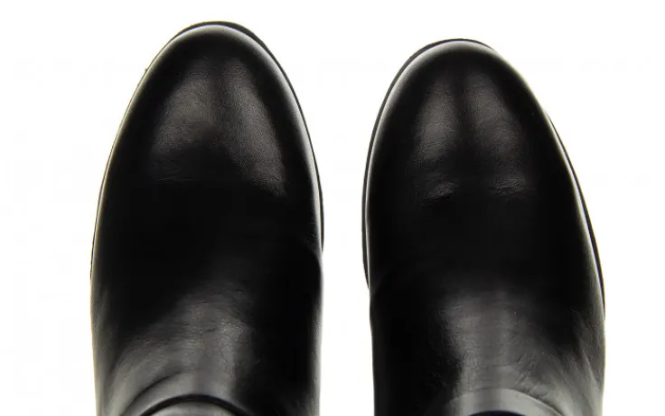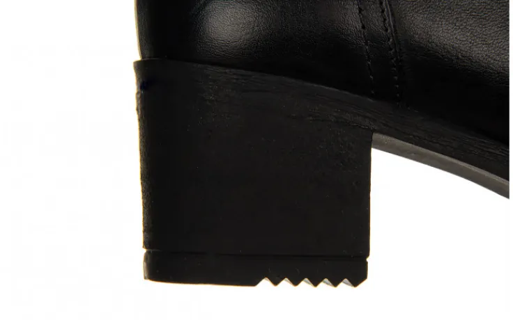 Zasuwane botki damskie z cholewką sięgającą do kostki. Efektowna klamra oraz elastyczna gumka z zewnętrznej strony. Gumowa, antypoślizgowa podeszwa amortyzuje wstrząsy oraz izoluje stopę od zimnego podłoża. Wyściółka z ocieplanego materiału. Wkładka wykonana z miękkiej gąbki pokrytej skórą naturalną. Model z migdałowym noskiem zachwyca swoim prostym krojem.
