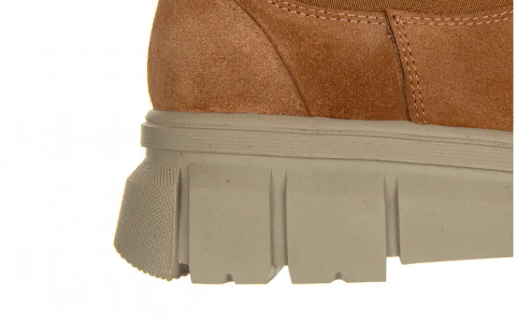 Wsuwane botki damskie w typie sztybletów z cholewką sięgającą za kostkę. Wbudowane gumowanie po bokach ułatwia zakładanie. Gumowa, antypoślizgowa podeszwa amortyzuje wstrząsy oraz izoluje stopę od zimnego podłoża. Wnętrze z miękkiego materiału. Klasyczny okrągły nosek.