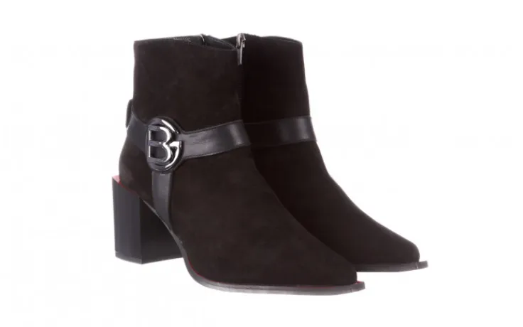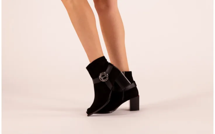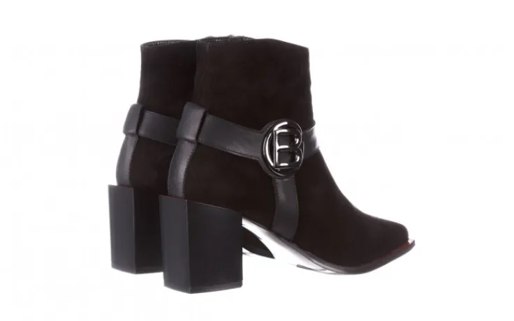 Botki marki Bayla wykonane z naturalnej skóry nubukowej w kolorze czarnym.