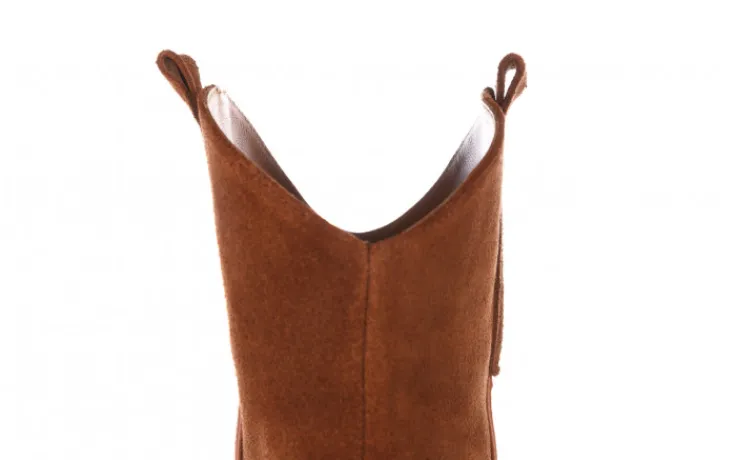 Botki marki Bayla wykonane z naturalnej skóry zamszowej w kolorze jasnobrązowym.