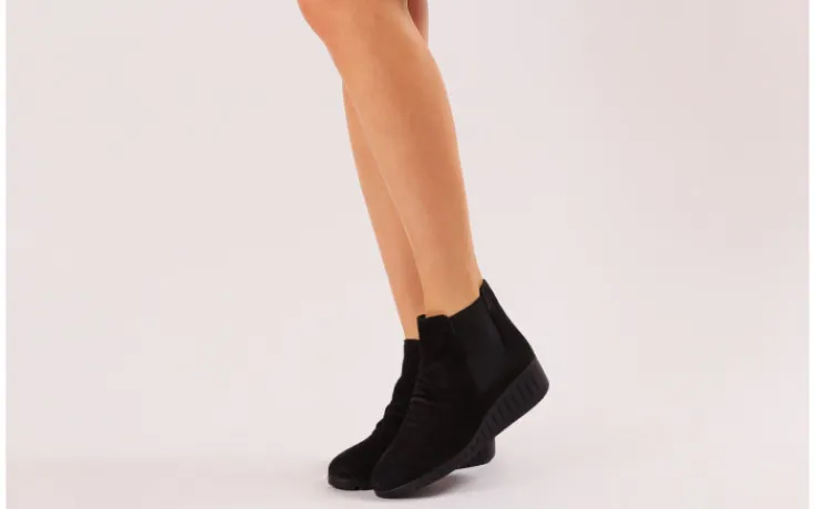 Botki marki Bayla wykonane ze skóry naturalnej zamszowej w kolorze czarnym.