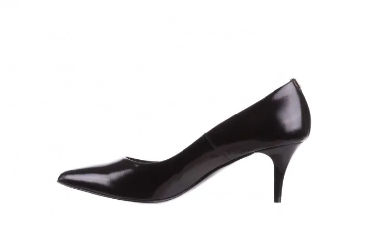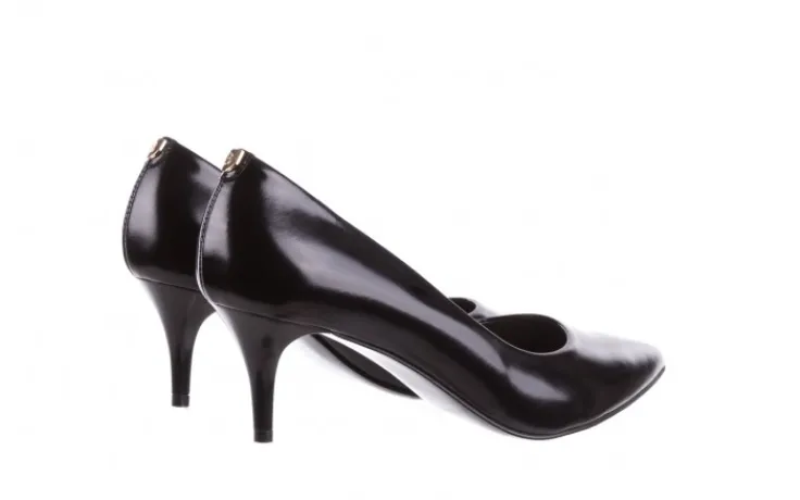 Wkładka wykonana ze skóry naturalnej w kolorze cielistym. Wyściółka również wykonana skóry naturalnej natomiast w kolorze czarnym. Buty na 5,5-centymetrowym obcasie typu kaczuszka w kolorze czarnym. Zwężane w szpic noski.