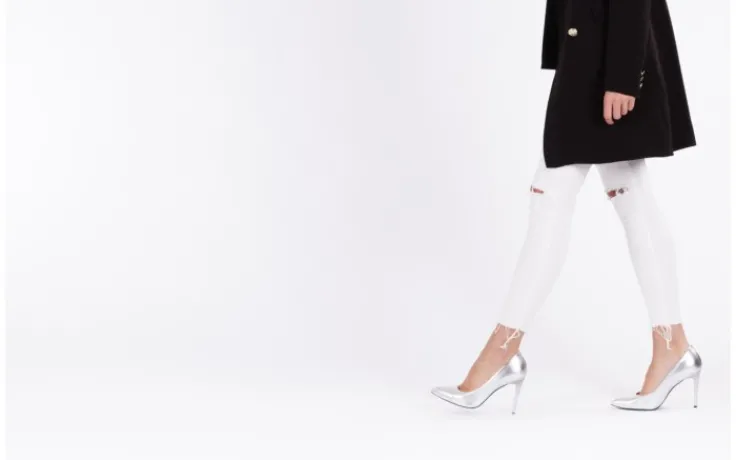 Mimo stosunkowo wysokich, 10-centymetrowych obcasów w kolorze srebrnym, czółenka są stabilne.