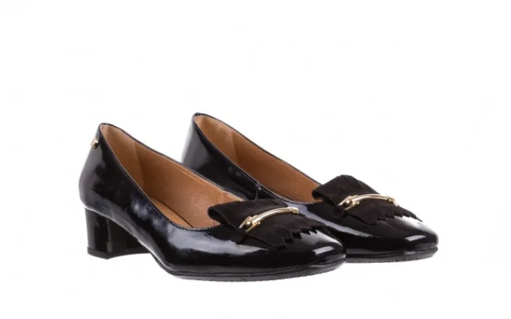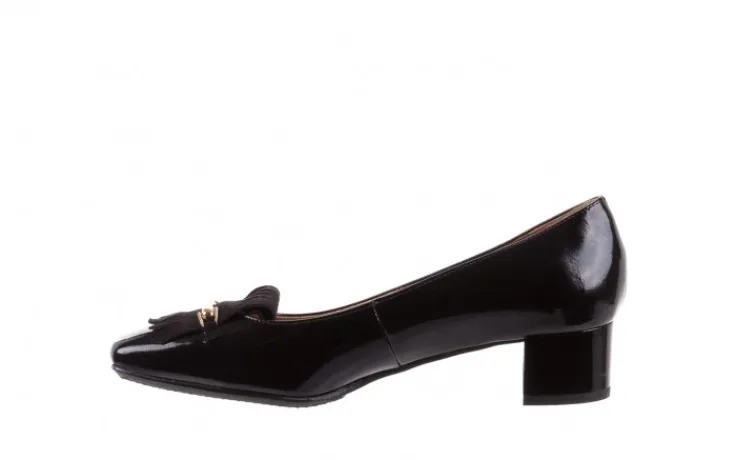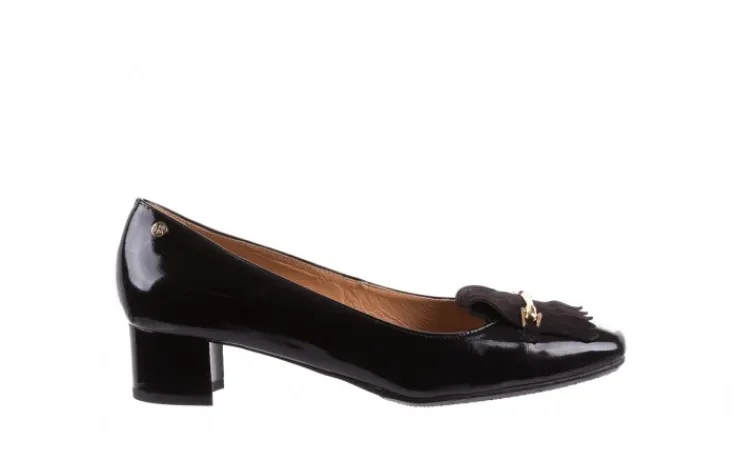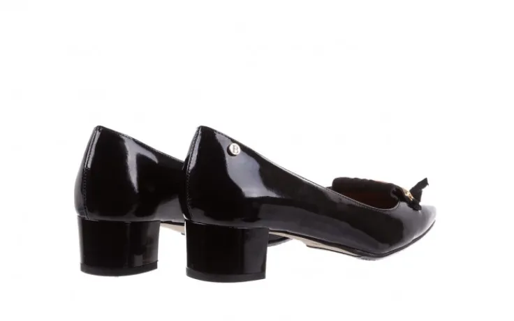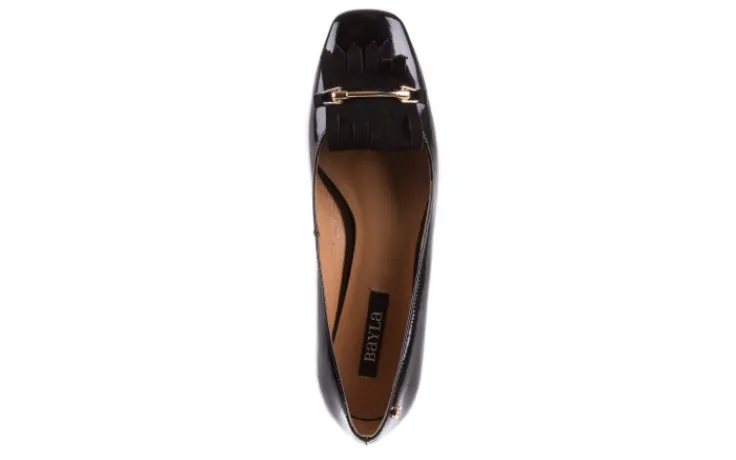 Klasyczne czółenka marki BAYLA wykonane są z wysokogatunkowej lakierowanej skóry naturalnej w kolorze czarnym.