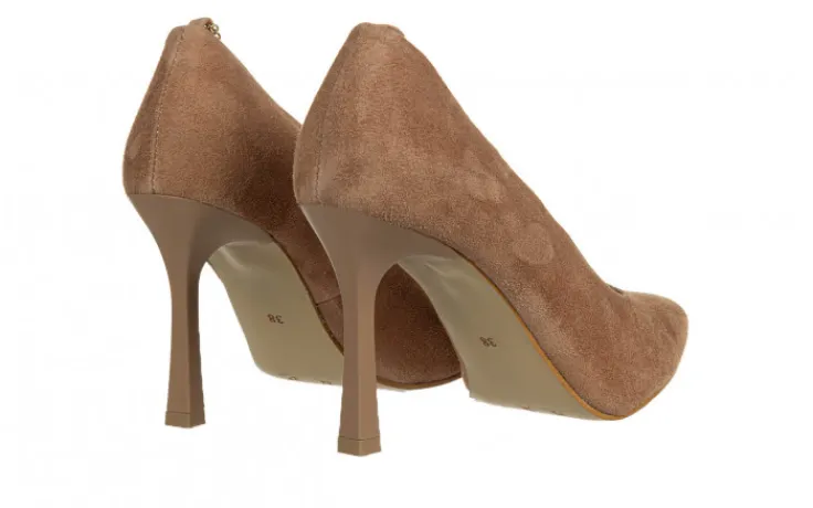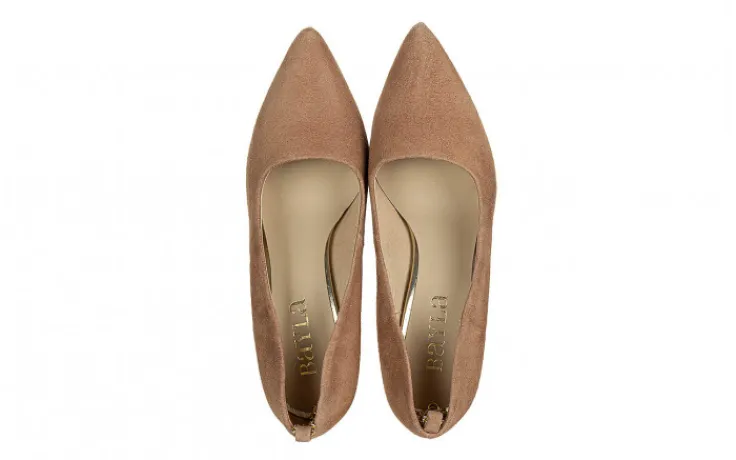 Beżowe czółenka marki Bayla wykonane ze skóry naturalnej zamszowej.