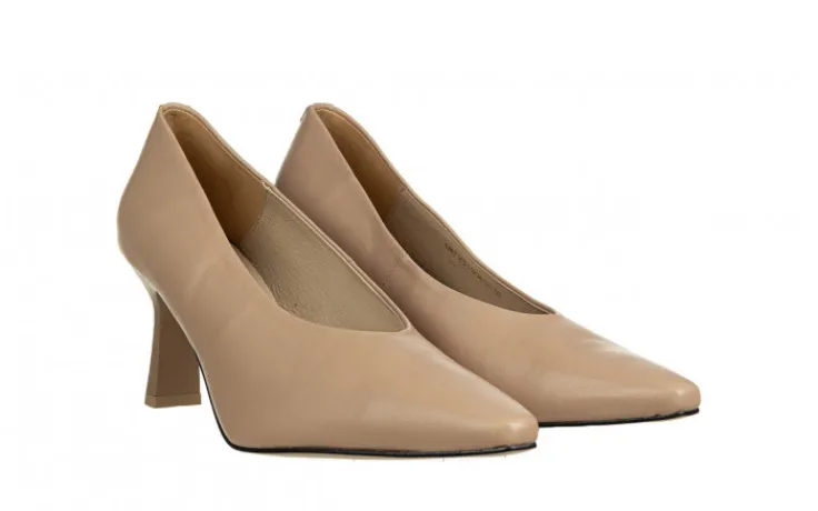 Czółenka marki Bayla wykonane ze skóry naturalnej licowej w kolorze beżowym.
