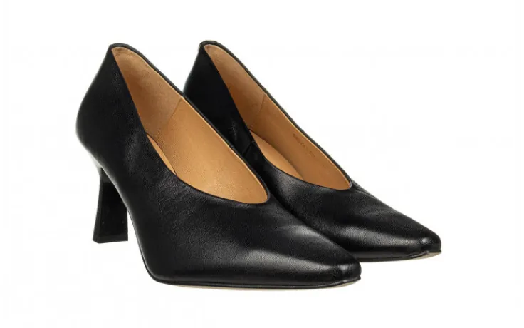 Czółenka z głębiej zabudowaną cholewką dla zwiększenia komfortu. Wkładka i wyściółka ze skóry naturalnej. Umiejscowienie obcasu na środku pięty sprawia, że buty są stabilne i bardzo wygodne. Dzięki wąskim noskom do szpica niezwykle zgrabnie prezentują się na nogach optycznie je wydłużając.