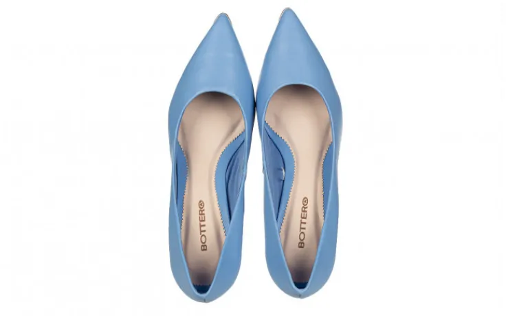Czółenka brazylijskiej marki Bottero wykonane ze skóry naturalnej licowej w kolorze niebieskim.