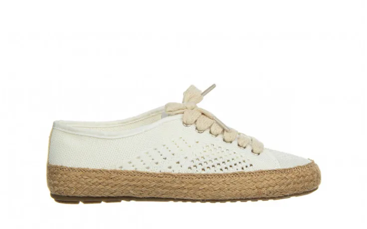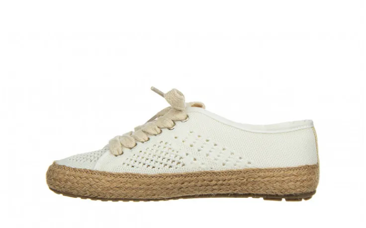 Ażurowana cholewka o prostym kształcie kończąca się przed kostką wykonana z organicznej bawełny. Miękkie, wyściełane wkładki zapewniają wygodę podczas noszenia. Antypoślizgowe podeszwy zostały ozdobione piękną plecionką, która nadaje obuwiu niepowtarzalnego charakteru i pozwala się wyróżnić. Model jest lekki, co bardzo dobrze wpływa na komfort użytkowania.