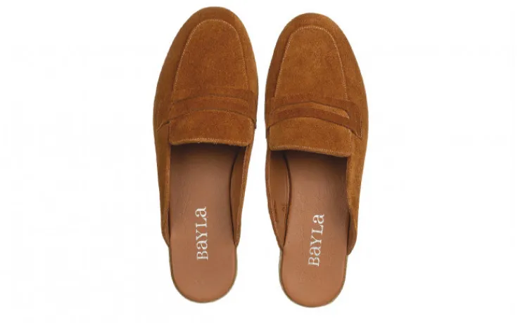 Klapki marki Bayla wykonane ze skóry naturalnej zamszowej w kolorze brązowym.