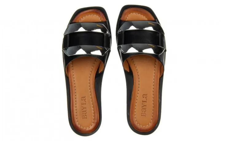 Klapki marki Bayla wykonane ze skóry naturalnej w kolorze czarnym.