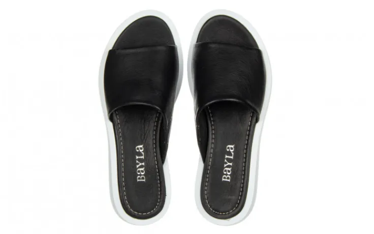 Klapki marki Bayla wykonane ze skóry naturalnej w kolorze czarnym.