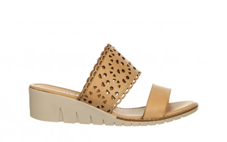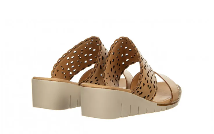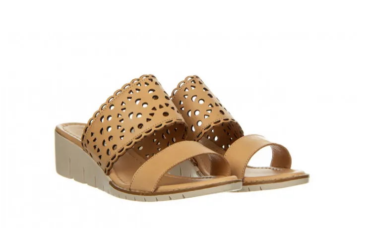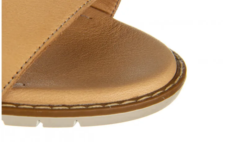 Dwa paski na przodzie, jeden z ażurowanym wzorem. Skórzane wkładki. Buty na gumowej podeszwie na podwyższeniu. W produkcji użyto miękkich, wysokojakościowych skór dla zwiększenia wytrzymałości i wygody. Idealnie sprawdzają się na co dzień podczas ciepłych, letnich dni.