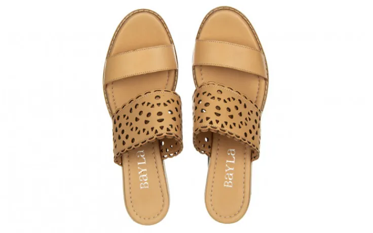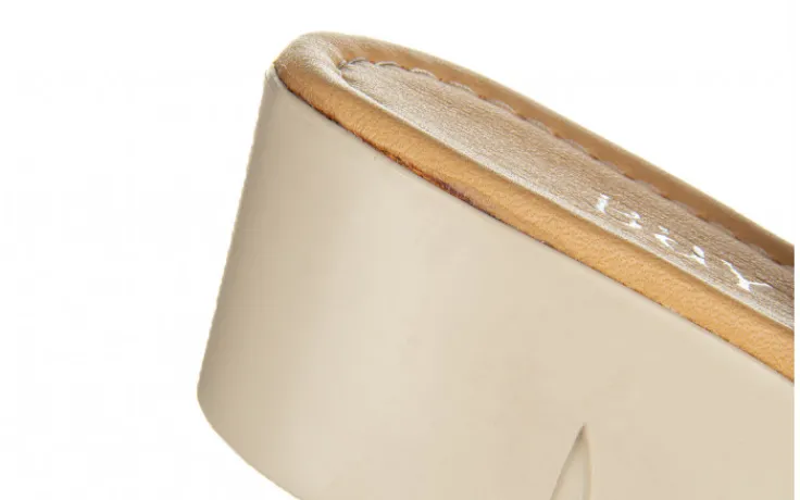 Klapki marki Bayla na koturnie wykonane ze skóry naturalnej w kolorze beżowym.