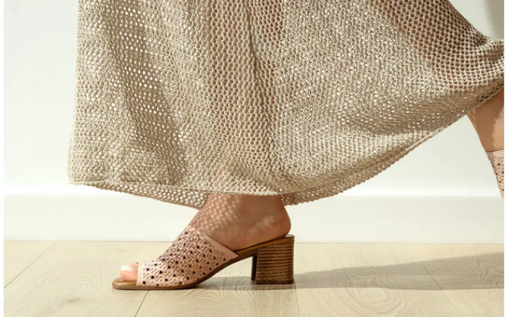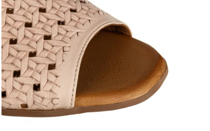 Klapki na słupku na gumowej, antypoślizgowej podeszwie. Ażurowana cholewka z miękkiej skóry. Buty idealnie sprawdzą się podczas ciepłych, letnich dni.