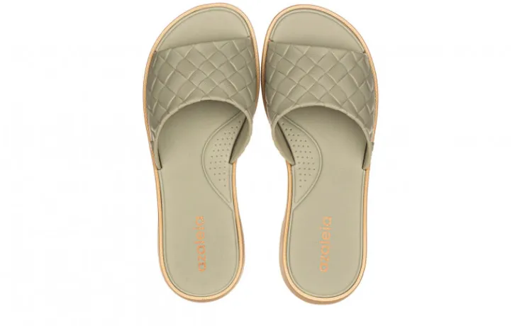 Brazylijskie klapki Azaleia w kolorze zielono-beżowym.