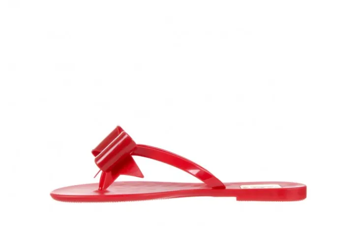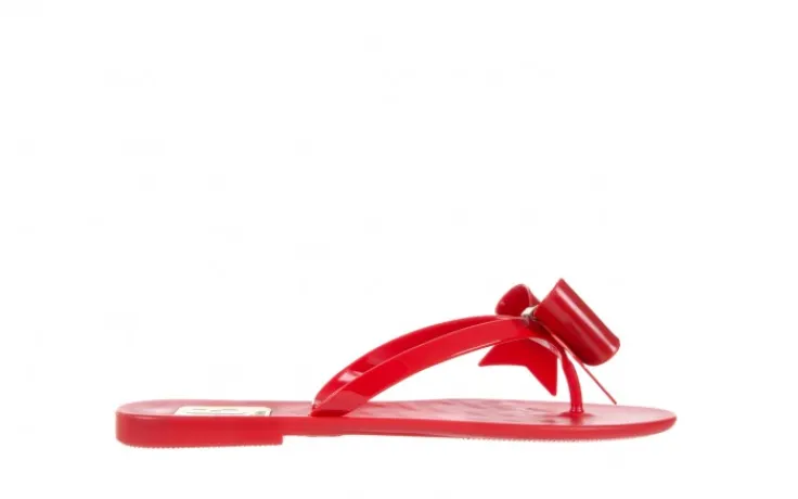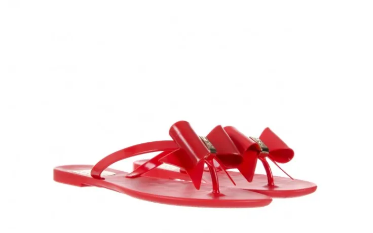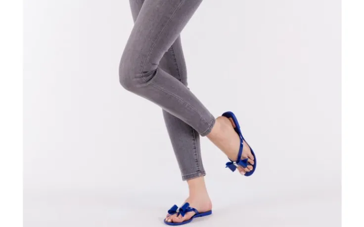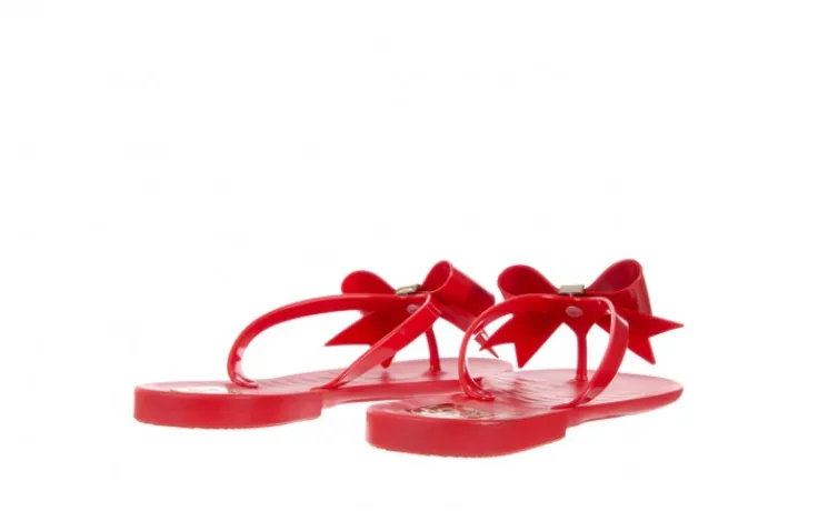 Klapki marki F&G Fashion. Na noskach piękna duża gumowa kokarda ozdobiona złotą klamrą z kryształkami. Ten klasyczny model będzie się idealnie komponował ze wszystkimi letnimi stylizacjami.