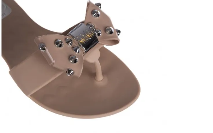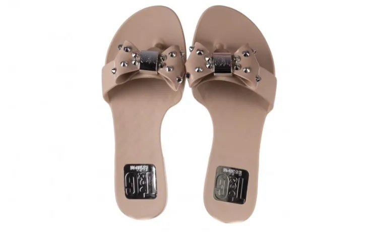 Buty posiadają gruby pasek przyzdobiony beżową kokardą obitą srebrnymi ćwiekami. Na środku kokardy wytłoczone logo marki T&G. Podeszwa o właściwościach antypoślizgowych. Klapki apetycznie pachną cynamonem. Wkładka modelu jest delikatnie żłobiona.