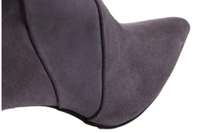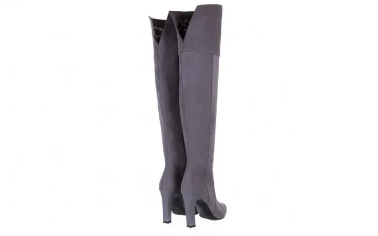Popielate buty z cholewką za kolano to hit ostanich sezonów. Ich wyjątkowo kobiecy, seksowny charakter sprawia że to buty które nadadzą każdej, nawet najzwyklejszej stylizacji pazura. Zwężany nosek butów i wysoka cholewka optycznie wydłuża nogi, sprawiając że wyglądają jeszcze zgrabniej.