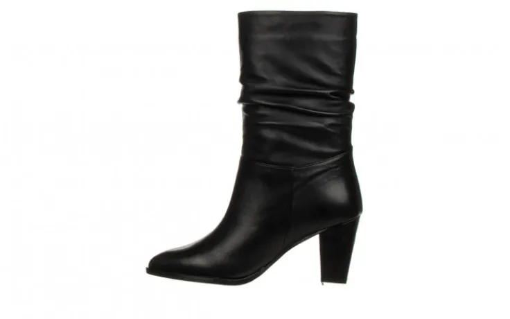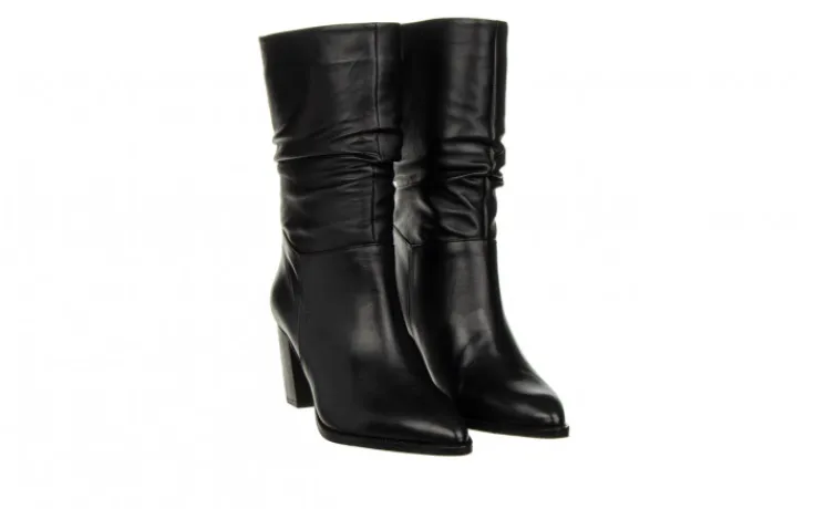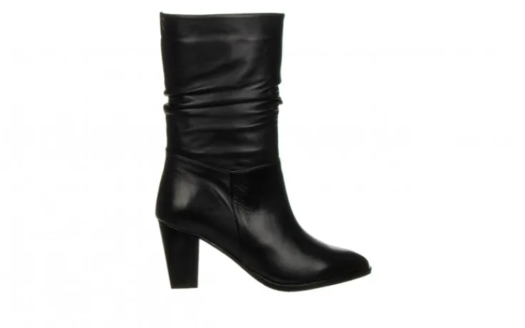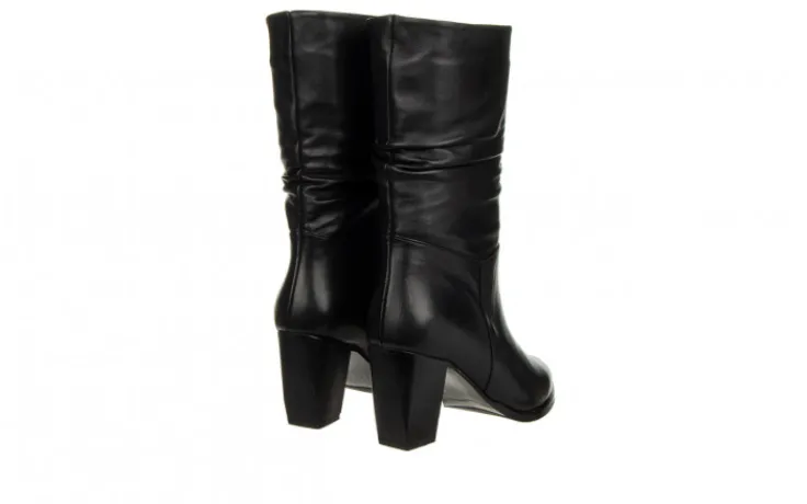 Kozaki damskie wsuwane z efektownie marszczoną cholewką sięgającą do połowy łydki. Szerszy, stabilny obcas typu słupek. Gumowa, antypoślizgowa podeszwa zwiększająca przyczepność. Wyściółka z ocieplanego materiału, wkładka ze skóry naturalnej.