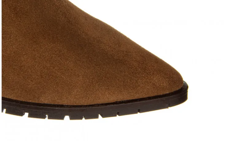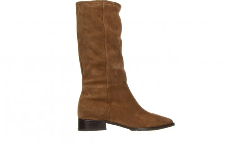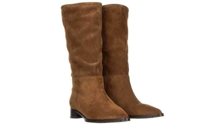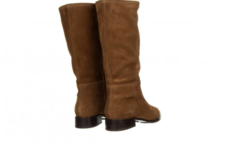 Kozaki marki Bayla wykonane z wysokiej jakości skóry naturalnej zamszowej w kolorze brązoworudym.
