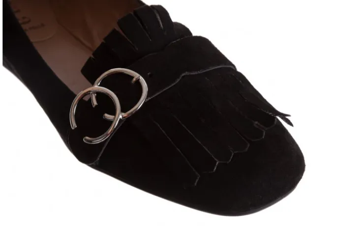 Wsuwane lordsy o klasycznej prostej formie wyjątkowo zgrabnie prezentują się na stopie. Prosty, ponadczasowy fason przełamuje srebrny detal przy skórzanych frędzelkach. Dzięki temu buty marki Bayla świetnie uzupełnią zarówno codzienne, jak i te bardziej eleganckie stylizacje.