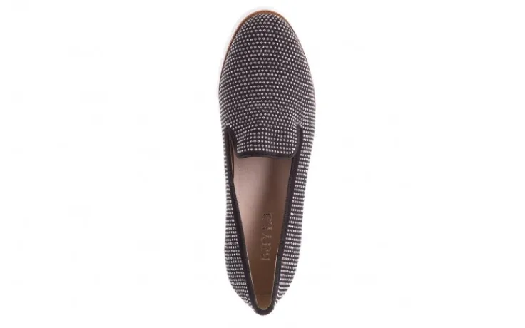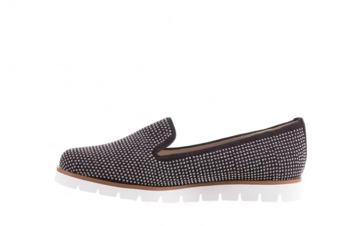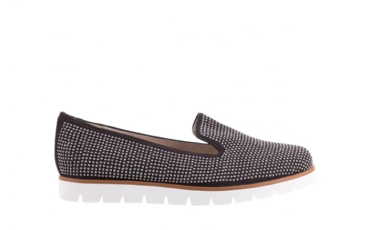 Czarne, wsuwane mokasyny marki Bayla pikowane stalowymi ozdobami w kształcie małych kółeczek.