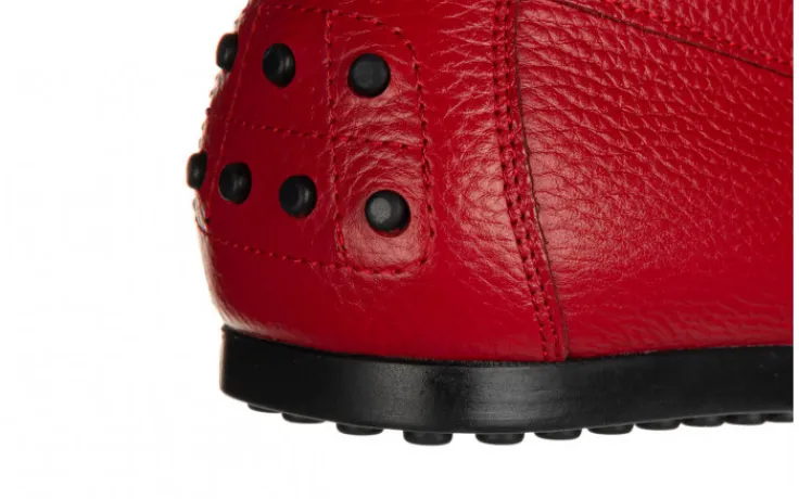 Mokasyny marki John Doubare wykonane ze skóry licowej groszkowej w kolorze czerwonym.