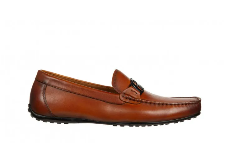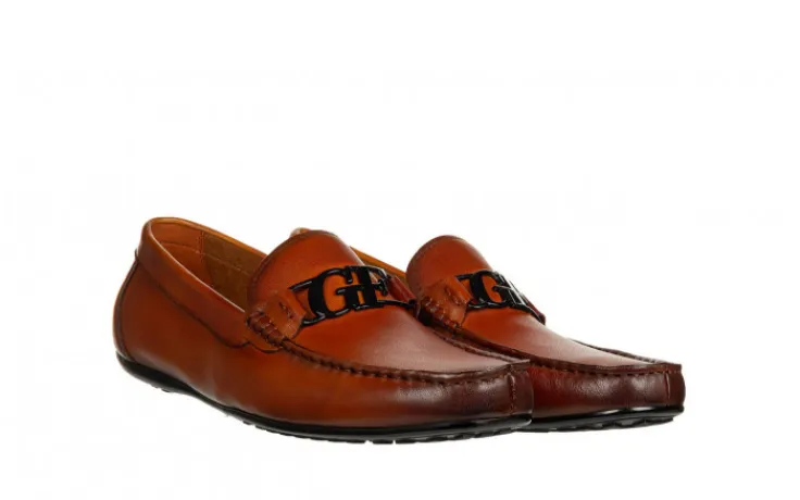Mokasyny marki John Doubare wykonane ze skóry licowej w kolorze brązowym.