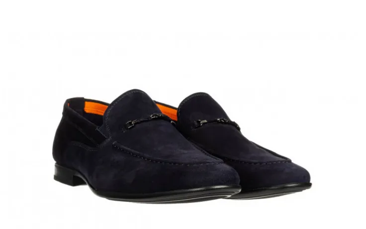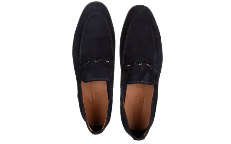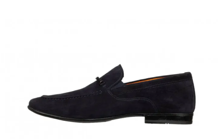 Mokasyny marki John Doubare wykonane ze skóry zamszowej w kolorze granatowym.