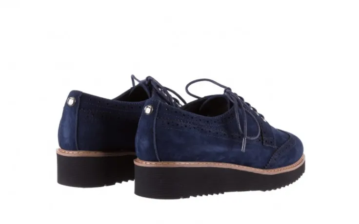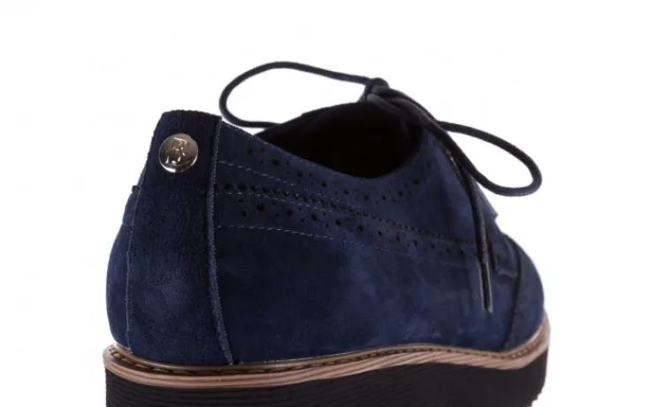 Sznurowane półbuty marki Bayla to idealna propozycja dla miłośników najnowszych trendów. Buty w kolorze głębokiego granatu wykonane są ze skóry zamszowej z efektywnymi przeszyciami w stylu derby. Na zapiętku logo marki w srebrnym kolorze. Posiadają także miekką, skórzaną wkładkę i skórzaną wyściółkę. Antypoślizgowa podeszwa i niewysoki koturn zapewniają komfort użytkowania.