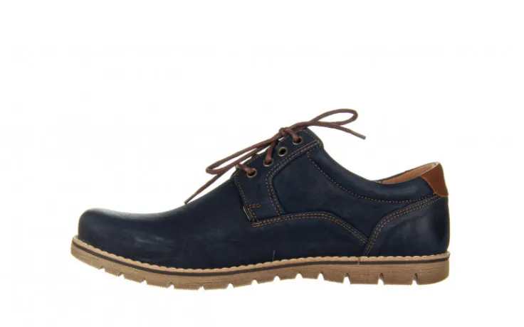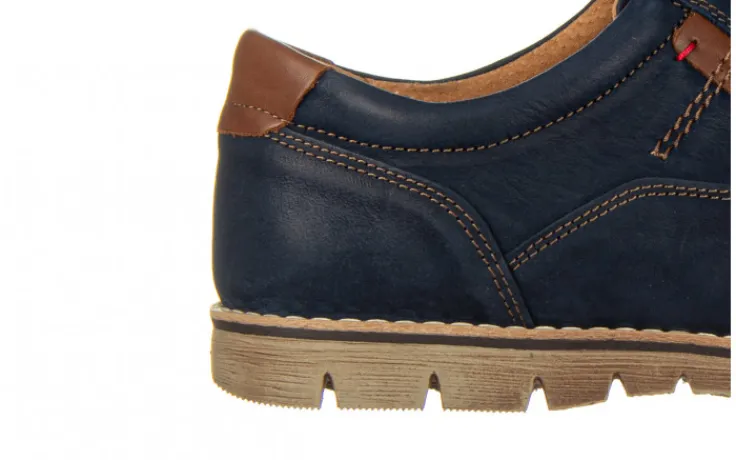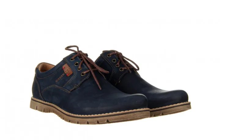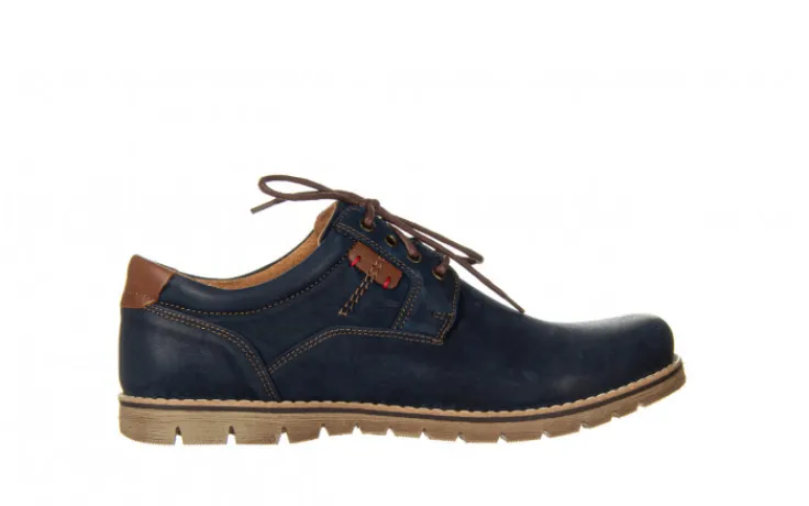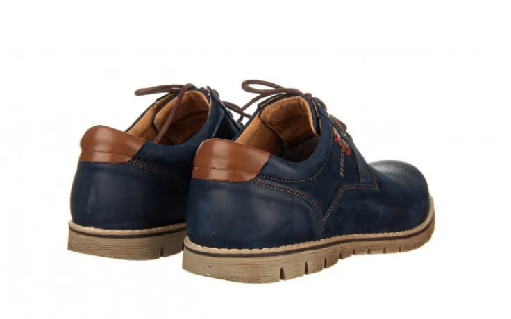 Wykończenie skóry na czubku buta i pięcie daje wizualny efekt wypolerowania. Wkładka oraz wyściółka skórzana co gwarantuje wygodę uzytkowania i komfort dla stóp. Sznurowane z przodu. Ozdobne przeszycia cholewki nicią w kolorze brązowym i podeszwa z utwardzanego tworzywa sztucznego również kolorze brązowym. Buty będą idealnym uzupełnieniem codziennego wyglądu wpasowując się zarówno w sportowe jak i bardziej casualowe stylizacje.