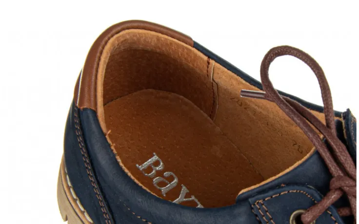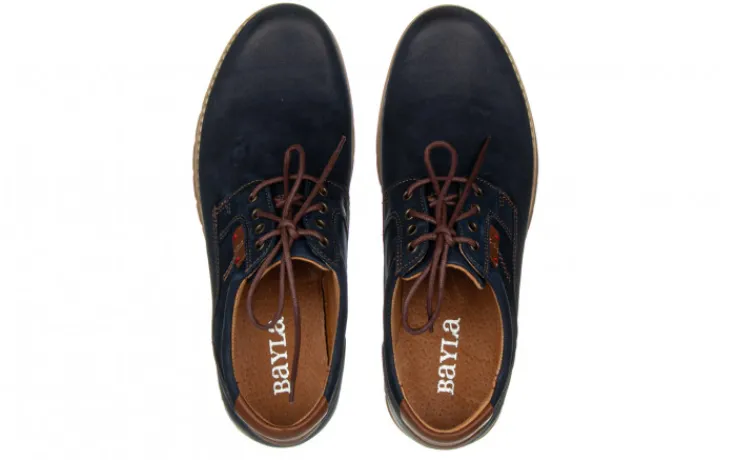 Niezwykle lekkie półbuty marki Bayla wykonane ze skóry nubukowej w kolorze granatowym.