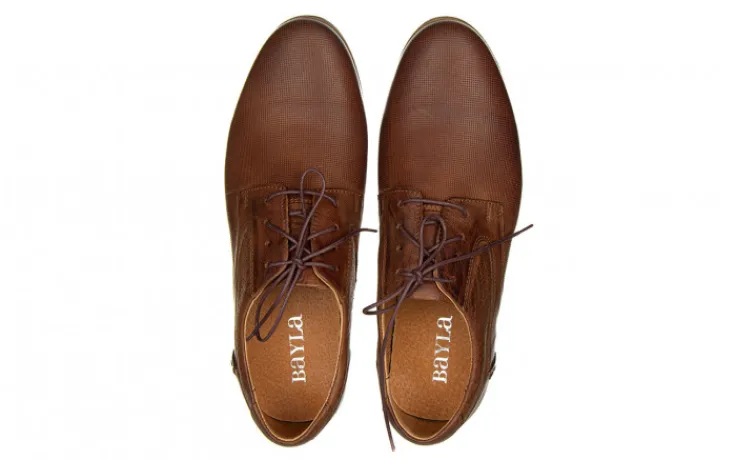 Niezwykle lekkie półbuty marki Bayla wykonane ze skóry licowej w kolorze brązowym.
